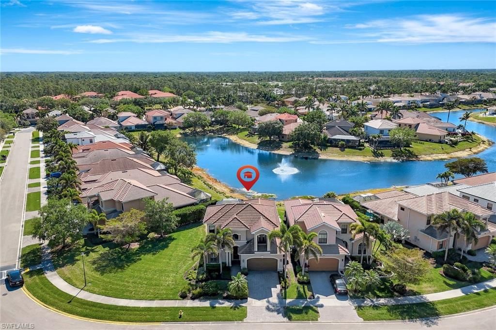 This beautiful North Naples single family home is located on one of the BEST LOTS in the hidden gem Andalucia gated community! At 2,730 sq. ft this 4 Bedroom (Primary Bedroom ground level), 3 1/2 Bathroom, pool home with SE rear exposure is sure to impress. Recently renovated and professionally decorated, the home offers a custom built in entertainment center, crown molding, decorative ceilings, Kinetico reverse osmosis water filtration system, newer roof, new pool water heater, and new pool pump. Enjoy your morning coffee overlooking down the long view of the lake while watching the birds play underneath the lake fountain. Minutes away from the famous Clam Pass Beach, 5th Avenue, Mercato, and conveniently located close to shopping and fine dining.  Call or Text Steven Chase at 239-287-0539 for more information.